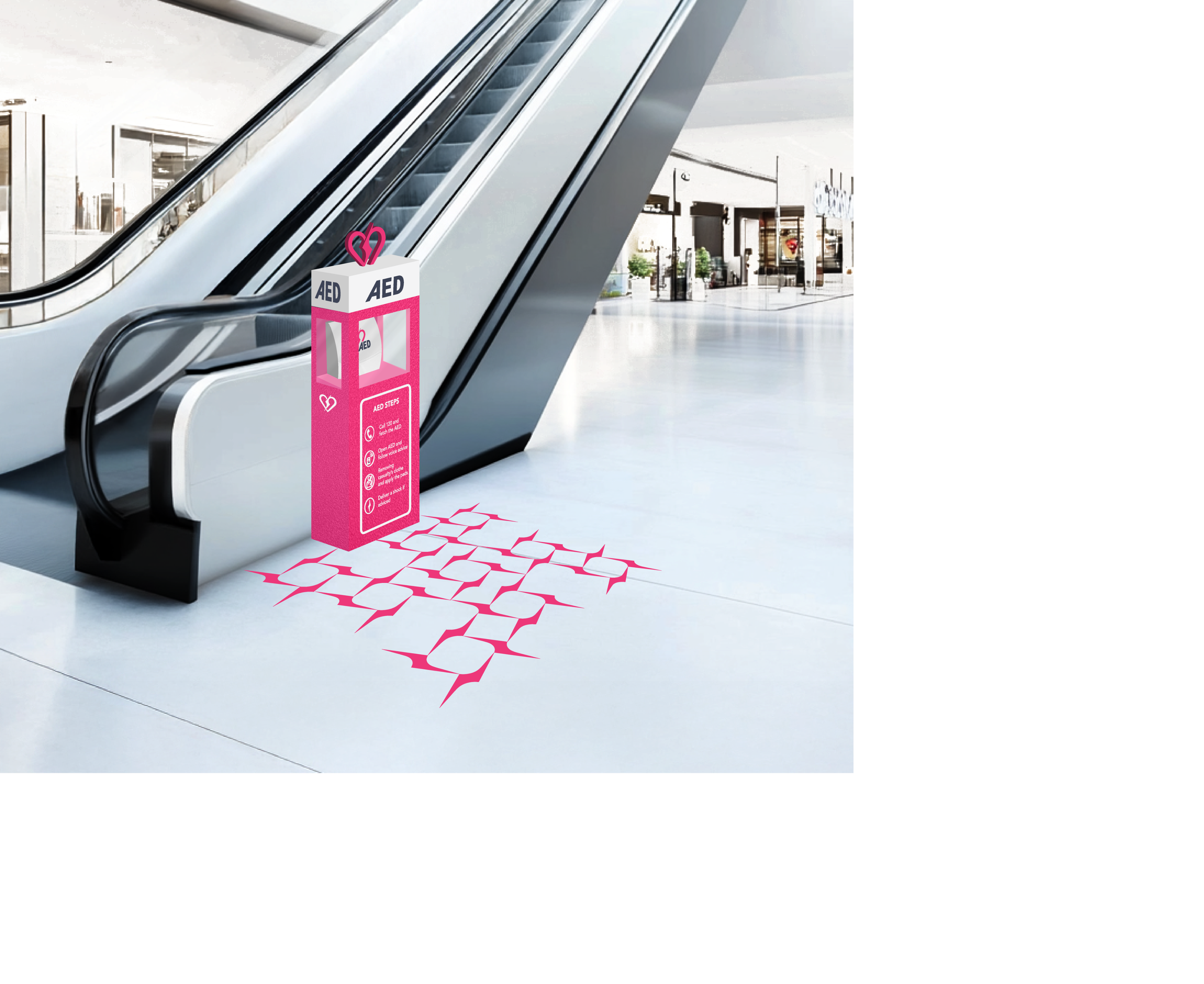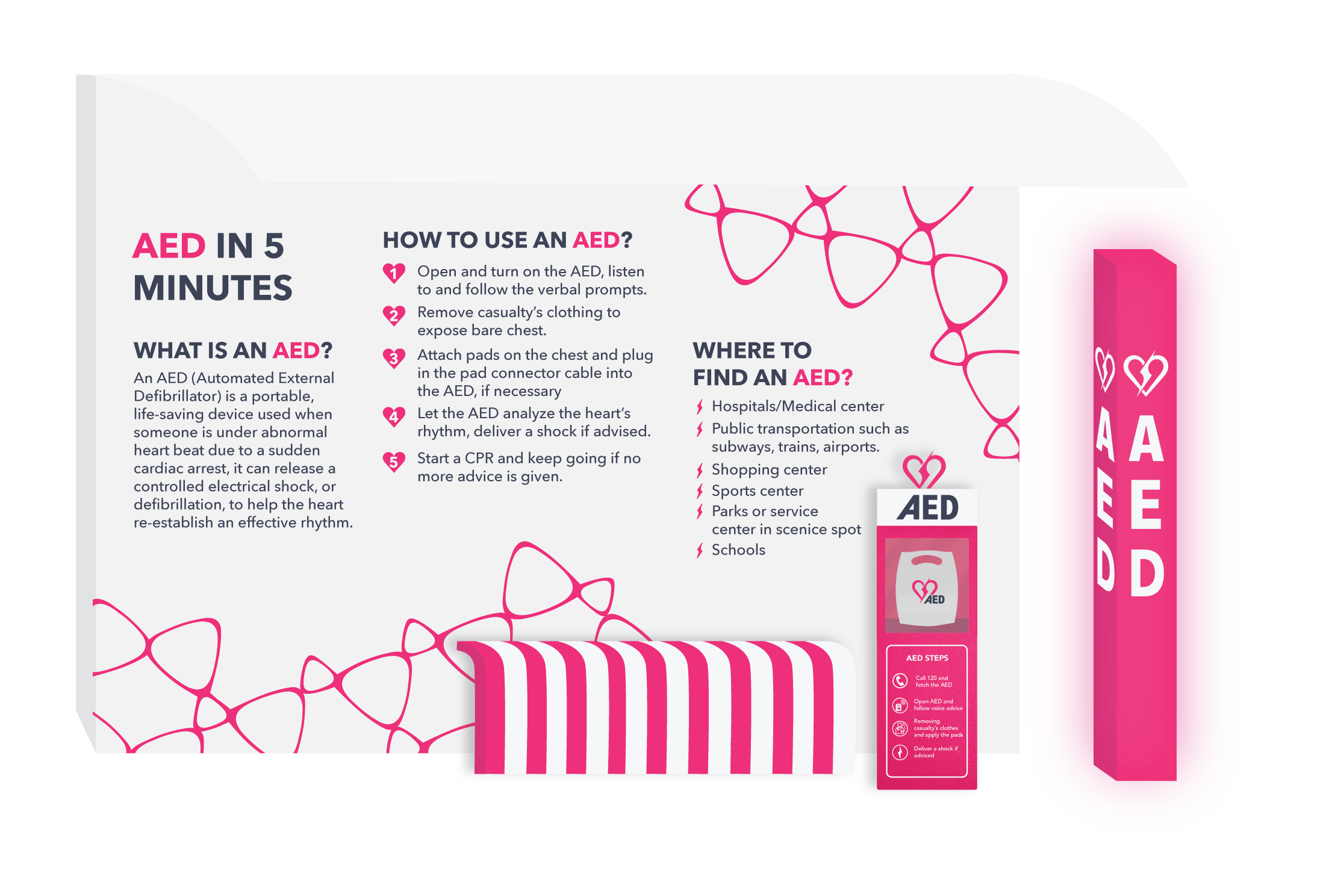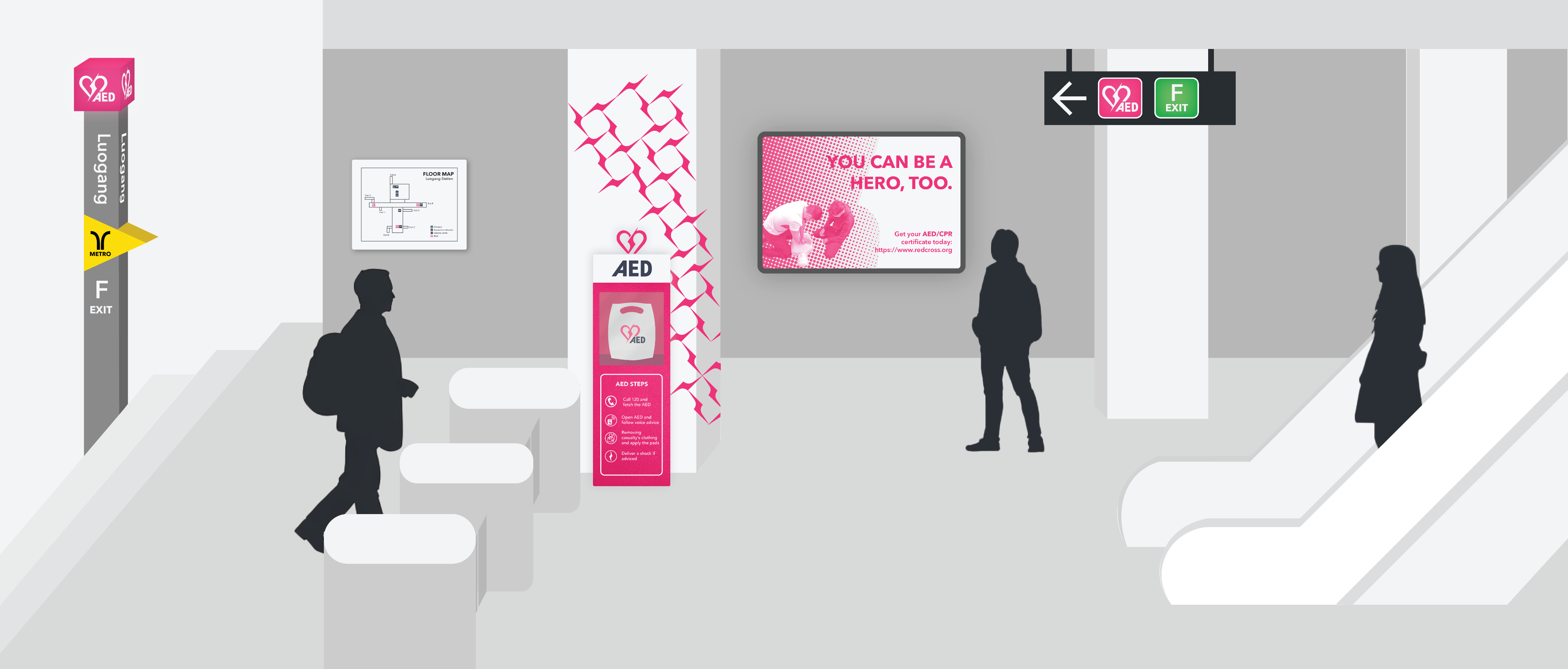 AED Wayfinding Re-design focus on raising the first aid awareness of the public by increasing the accessibility and visibility of AED device, so that it also improves the overall experience of first aid.