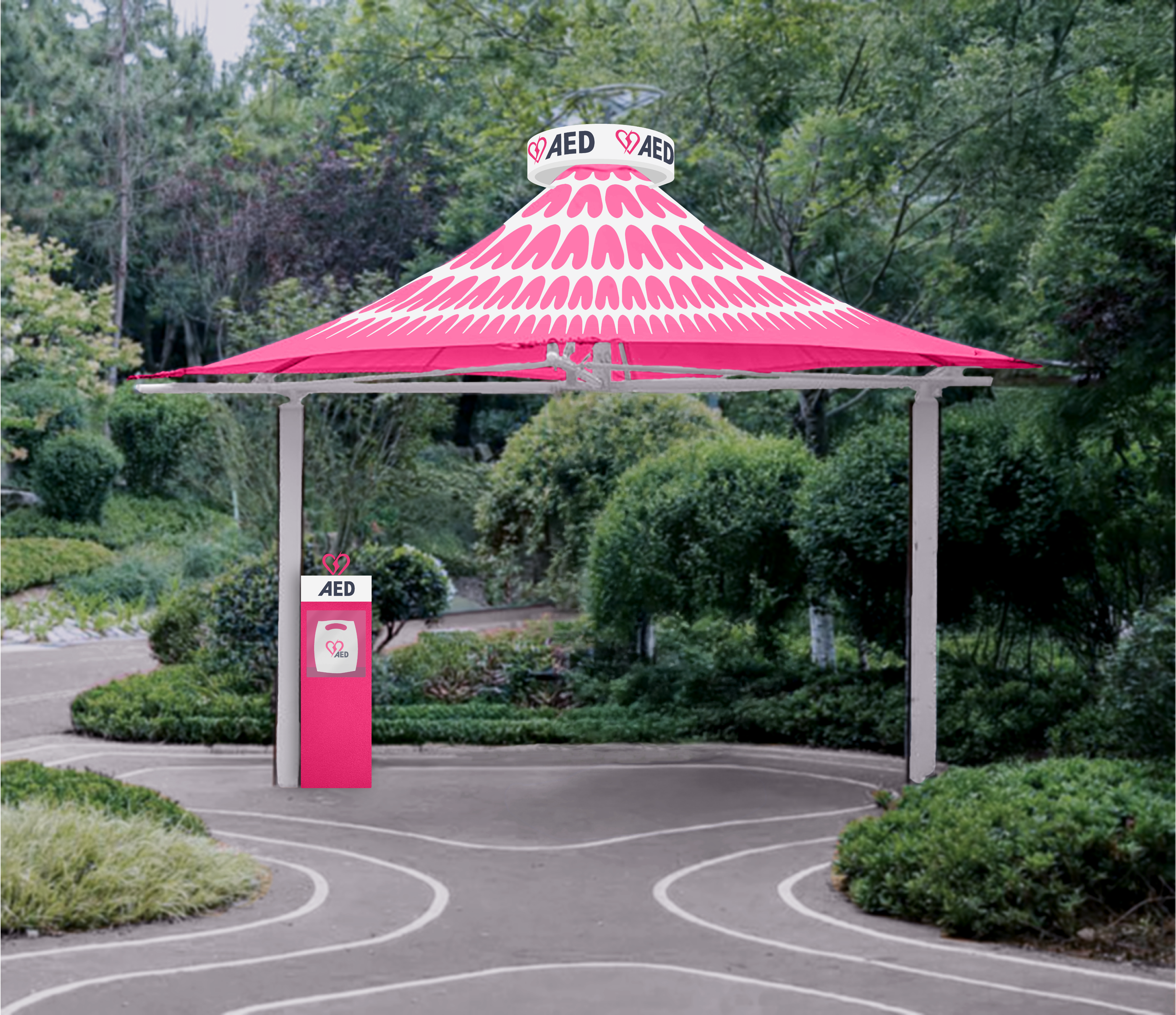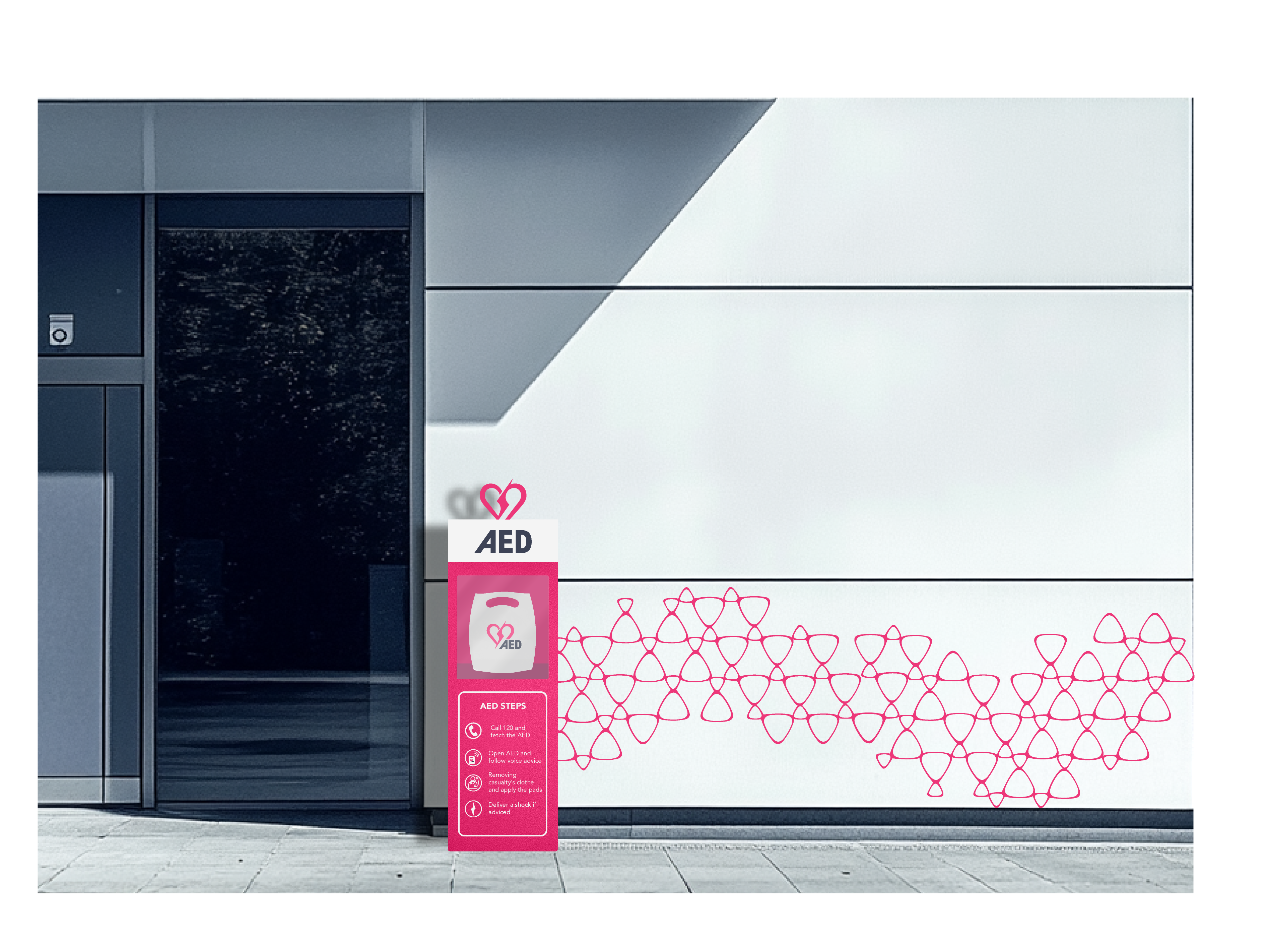 Unified the exterior design of AED booth with the fixed coloration and redesigned logo to make it more recognizable and accessible.